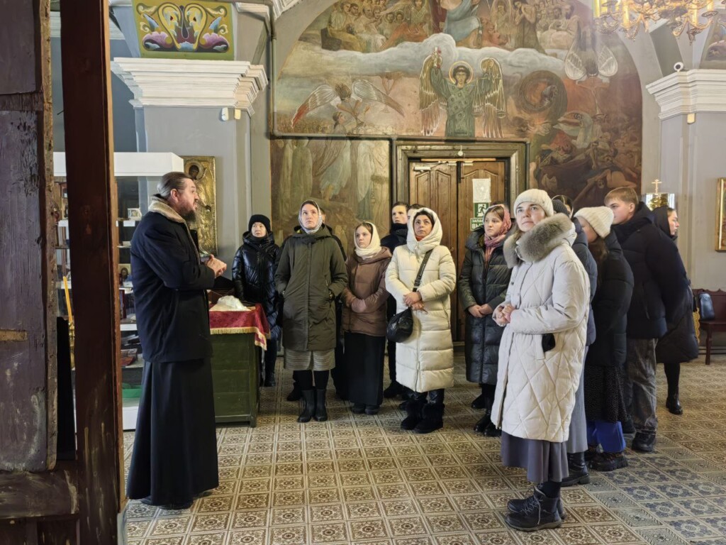 Затем направились в храм Воскресения Словущего в с. Толпыгино, где нас встретил настоятель протоиерей Александр Карелин с матушкой Ольгой, провели небольшую экскурсию и напоили вкусным горячим чаем с постным угощением.